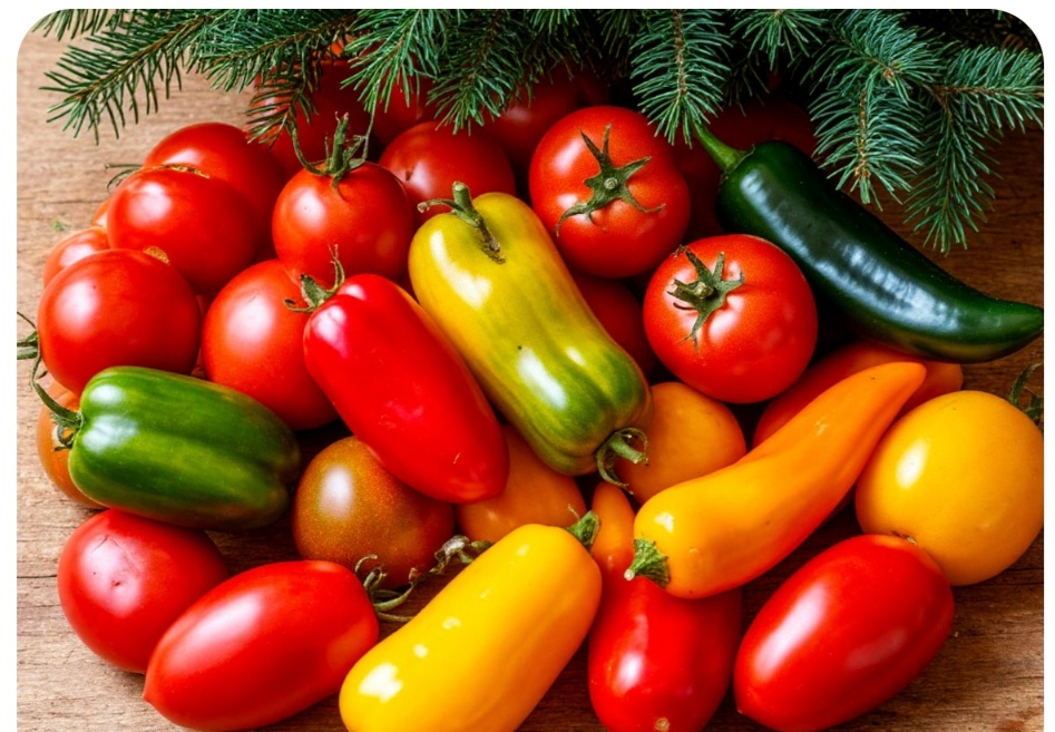 "Куст томата со спелыми красными, бурыми и зелёными помидорами с вытянутым носиком" 😂
