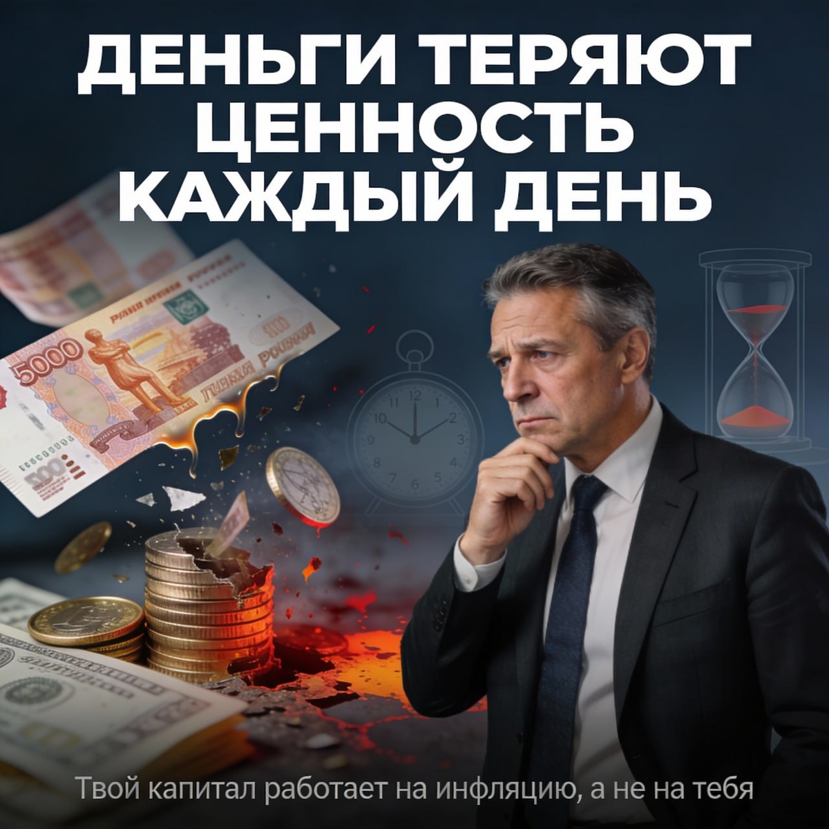 Представь: на счету лежит 5 млн рублей. На бумаге — стабильная круглая сумма, но на самом деле это иллюзия. 🟧Каждый месяц инфляция съедает 0,5–0,7% от этой суммы. В год — это 6–10% потерь в покупательной способности. За 5 лет — более половины. 🟧 Пока ты строишь бизнес, разговариваешь с клиентами и контролируешь доход, твои накопления систематически дешевеют — просто потому что они лежат на месте. 🟧Деньги, которые покупали квартиру в центре Москвы, через 10 лет смогут купить только студию на окраине. Почему это именно про тебя: Если у тебя есть сформированный капитал (в рублях) и ты предприниматель, то ты наверняка уже заметил эту проблему. Попробовал положить на депозит — доход ниже инфляции. Депозиты дают 15–16% номинально, но реально теряешь всё равно. А главное: пока ты ищешь «надёжный способ», время идёт. Каждый год ты теряешь деньги, и это не метафора. 🟧🟧🟧 Если бы ты мог переводить рублёвые накопления в актив, который защищает от инфляции и генерирует доход в валюте,