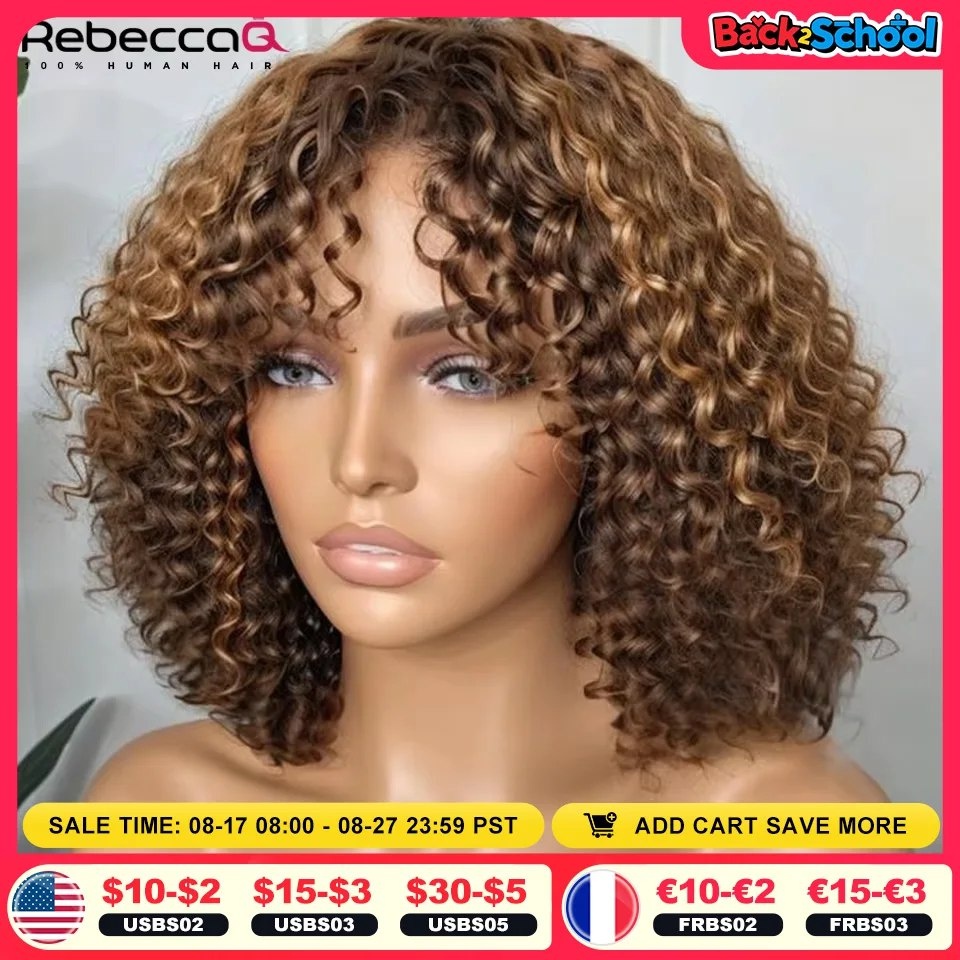 Короткие вьющиеся парики из человеческих волос с челкой, полностью машинные парики, медовые блондинки, цветные парики для женщин, дешевые