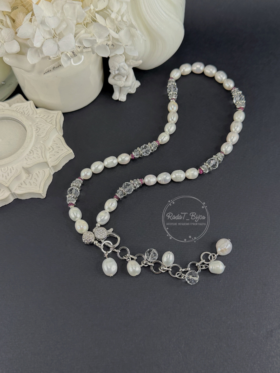 Сотканное из нежного жемчуга, прозрачного горного хрусталя и крошечных рубиновых бусин, скрепленных красивым декоративным замочком, оно готово к любой метаморфозе.