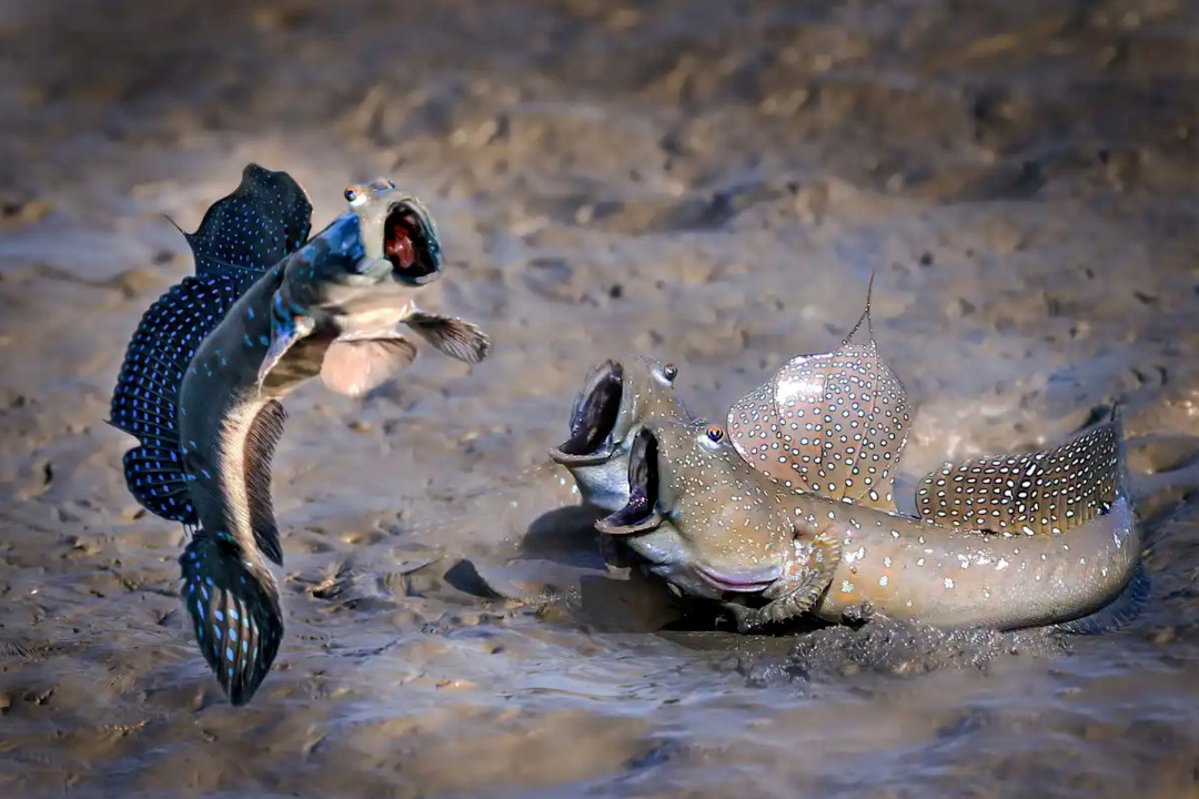 Привет, мои дорогие любители необычной земной фауны, как ни крути, а Жизнь, родившись в океане, с самого начала явно поглядывала в сторону суши, и, честно говоря, меня всегда забавляло это упорство — словно кто-то настойчиво стучался в закрытую дверь, зная, что рано или поздно ему всё равно откроют. Представь себе, как на протяжении миллионов лет формы жизни раз за разом примеряются к воздуху, как к новому костюму, и даже если бы выход на сушу не случился в палеозойскую эру, он всё равно произошёл бы — просто потому, что такие идеи эволюция не забывает. Сегодня речь пойдёт об илистых прыгунах (Periophthalmus) — удивительных рыбах, которые выглядят так, будто забыли, что им положено жить в воде, и вместо этого с азартом осваивают прибрежную сушу, словно подростки, сбежавшие с уроков. Почему «прыгуны» — становится ясно, стоит лишь взглянуть на их поведение: во время брачных ритуалов самцы высоко подпрыгивают над поверхностью ила, демонстрируя самкам силу и ловкость, а те, разинув рты в н
