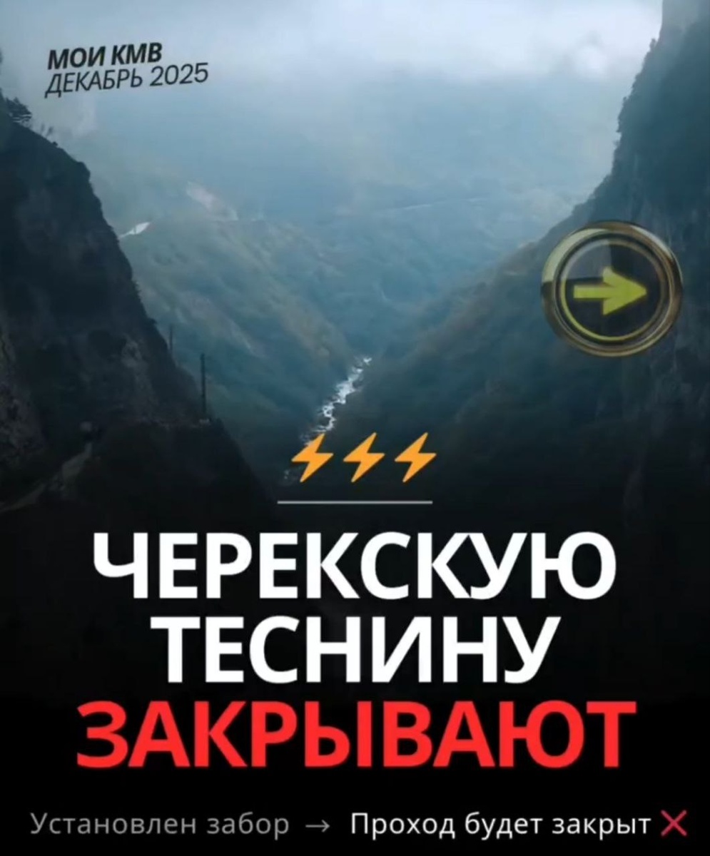 ❌ ИНТЕРЕСНО ваше мнение, правильно ли закрывать одну из топовых локаций маршрута ведущего в Верхнюю Балкарию❓ Сегодня 25/12/2025 при посещении Черекской теснины обнаружили ЗАБОРЫ установленные на подходе к старой колесной дороге, нам сообщили, что ВСКОРЕ ❌ПРОХОД БУДЕТ ЗАКРЫТ❌ и связанно это напрямую с безопасностью как местных жителей так и гостей Кабардино-Балкарской республики. 🏔️ О теснине: Черекское ущелье является одной из самых захватывающих природных достопримечательностей Кабардино-Балкарии. Серпантин проходит по самому краю теснины, высота скал которой достигает полукилометра от узкого дна. Ущелье поражает своими масштабами и изумительной красотой. Здесь можно испытать настоящий экстрим. Окружающую тишину нарушает только шум горной реки Черек Балкарский, которая протекает на дне теснины. © Видео: Сергей Янченко и Григорий Балаян Источник: МОИ КМВ ✧ Пятигорск ✧ Кисловодск ✧ Ессентуки ✧ #кабардинобалкария #ущелье #черекскаятеснина #кавказ #кбр #туризм #туризмкбр