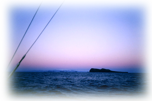 Сперва нас вдруг потащило влево на два небольших острова, разделённых узким проливом. Наверх вылез возмущённый Николай: «Куда едем?!» Увалились вправо – ещё лучше: понесло точно на зюйд, на берег острова Роуси, а потом и обратно в Атлантику. Что ещё за фокусы?! Уже поставили все паруса, режемся изо всех сил, и всё равно ездим практически по одному месту.