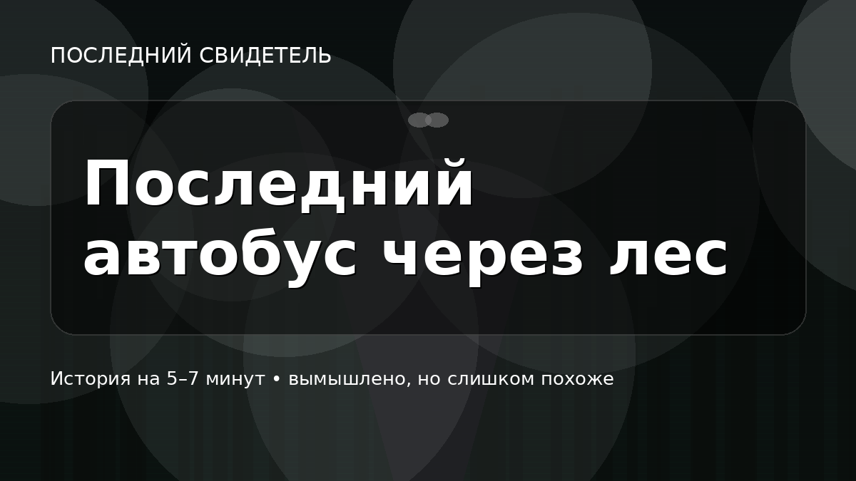 На конечной у нас всегда стояли два автобуса: один “на линию”, другой “на ремонт”. Ночью оставался только один — пустой, с тёмными окнами. В воскресенье я вышел поздно. Снег шёл мелкий, как пыль. Остановка была пустая. И я уже собирался вызвать такси, когда увидел автобус без маршрута. На табло не было номера. Только слово: ДОМОЙ Двери открылись, как будто он ждал именно меня. Внутри горел мягкий свет. Водитель сидел, но лица не было видно — капюшон и тень. Я сел ближе к середине. Автобус тронулся сразу, без обычной паузы. Мы проехали пару кварталов — и свернули не туда. Не на трассу. Не на объезд. А в сторону лесополосы, где дороги вроде есть, но туда никто не ездит ночью. Я встал и подошёл ближе: — Извините, а вы куда? Водитель не повернул голову. Только сказал тихо, будто не мне: — Садись. Дальше без вопросов. Автобус въехал в лес. Фары выхватывали деревья, и дорога стала узкой, как тропа. Телефон показал “нет сети”. Я сел обратно. В салоне было пусто. Только на самом заднем сиден