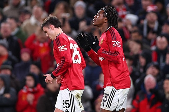 Очевидно, что непривычная расстановка манкунианцев поначалу смутила гостей. Поэтому хозяева сразу провели энергичную атаку левым флангом и заработали угловой усилиями Шоу, розыгрыш которого завершился неточным ударом головой в исполнении Каземиро. Впрочем, полноценно забрать себе инициативу у команды Аморима не получилось. "Сороки" немало времени проводили с мячом и нагнетали напряжение на чужую оборону. По ходу стартового отрезка команда Хау заработала несколько угловых. Розыгрыш одного из них получился весьма опасным для "красных дьяволов". Гимарайнс на ближней штанге откликнулся на подачу Тонали и хорошо пробил головой, но Ламменс среагировал на неприятный удар соперника с близкого расстояния и ликвидировал угрозу от собственных владений. В середине тайма мы уже увидели в деле Рамсдейла, справившегося с непростым ударом Куньи. Зато следом манкунианцы выжали максимум из аута и открыли счёт. После длинного броска из-за боковой линии в исполнении Далота Вольтемаде головой вынес мяч прямо на Доргу, и Патрик эффектным ударом слёту поразил гостевые владения - 1:0. Классный выстрел удался датчанину, для которого этот гол стал первым за "МЮ".