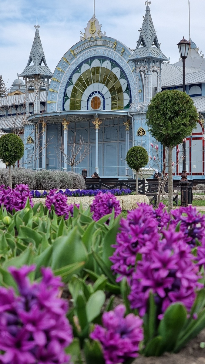 Привет всем, на связи Ирина Анти-Кефир. Сегодня для меня особенно трепетный день, я начинаю вести канал в Дзене и делиться своими наработками из моих авторских квест туров и рассказывать про мои любимые локации. Заранее благодарна за ваше внимание и поддержку. В моей первой статье хочу рассказать про главный объект в моем родном Пятигорске. Итак, на сцену выходит Лермонтовская галерея — визитная карточка Пятигорска, та самая, что мелькает в ленте у каждого, кто тут побывал. Но мы с вами пойдем дальше стандартного селфи. Мы разберем эту ажурную красоту по винтикам (именно так я обычно и делаю в живых квест турах), заглянем в ее стеклянную душу и, возможно, даже потревожим парочку местных привидений. Вид снаружи: Прямиком из сказки, но с доставкой из Варшавы Идете вы по парку «Цветник», любуетесь на толпу у Гукасовской кофейни, и вдруг — бац! — перед вами возникает эта невесомая, будто парящая, голубая штуковина. Кажется, ее сплели из морозных узоров, а вместо стен вставили кусочки неба