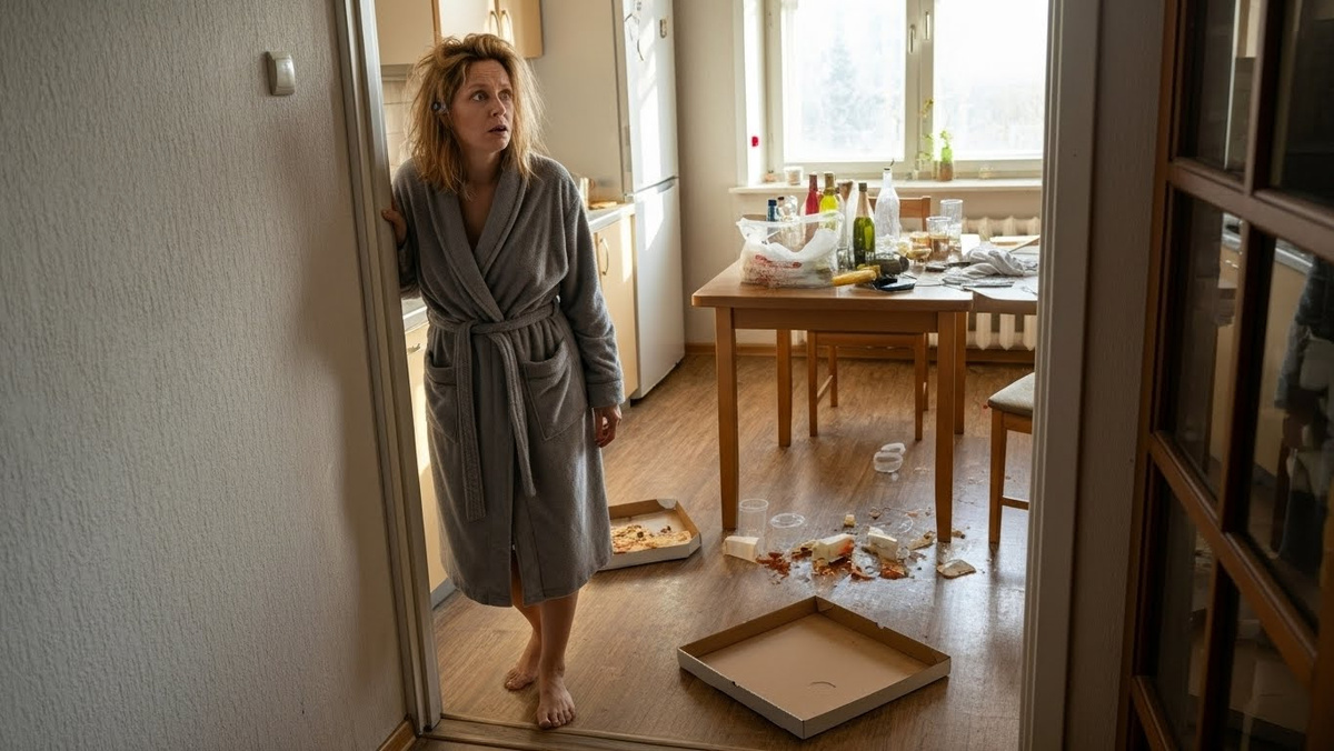 Ситуация — это было слабо сказано. Когда Лариса вышла на кухню, перед ней открылась картина, достойная музея современного искусства. Три огромных пакета, набитых бутылками. Пять коробок из-под пиццы (откуда пицца, если она помнила только оливье?). Гора пластиковых стаканчиков. И над всем этим великолепием — едва уловимый, но настойчивый запах разложения и праздника.