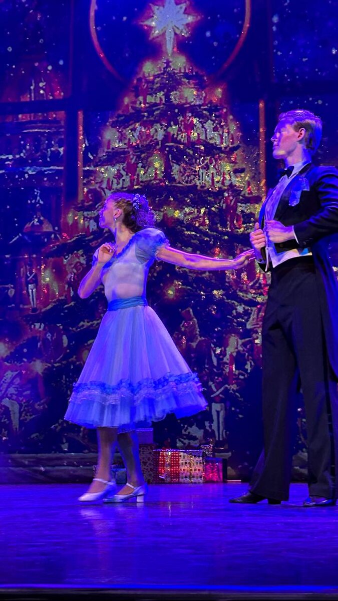 Обязательно берите места в партере и желательно у центрального прохода, чтобы стать полноценными гостями в Рождественскую ночь и «зажечь» канделябры. Мы же «посетили бал» с первого ряда партера. Сцена высокая, но дочка желала именно так. Идеально 3-5 ряды партера для обзора полной сценической картинки и возможностью любоваться геометрией танца. Амфитеатр в зале практически не имеет подъема.