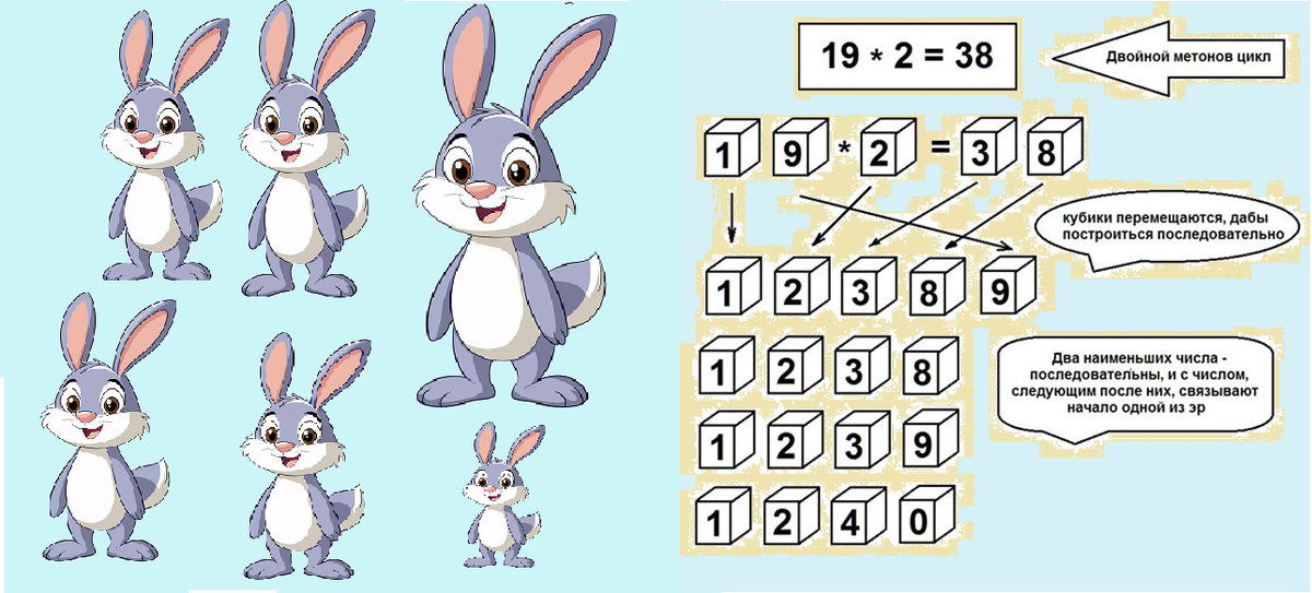 И вот с этой точки зрения вполне была возможна ситуация, когда любое упоминания о становлении глобальной хронологии, любой лишний намек на метонов цикл был бы излишним. И именно поэтому Фибоначчи и его коллеги в качестве натуральной опоры своей знаменитой последовательности решили дать именно размножающихся кроликов, а не метонов цикл.