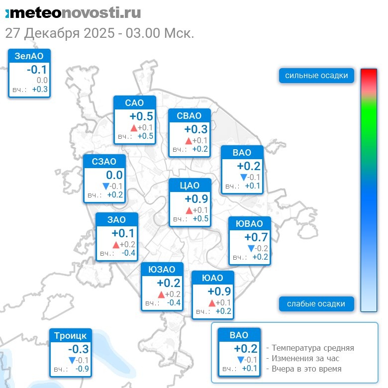 В 3:00 в Москве было от -0.6°C до +1.5°C, средняя температура +0.4°C #погода #Москва #зима #температура #27декабря #суббота