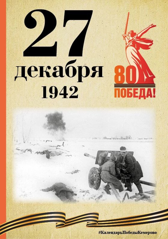 В спецпроекте, приуроченном к 80-летию Победы, продолжаем вспоминать знаменательные даты, связанные с Великой Отечественной войной. 27 декабря 1942 года в рамках Сталинградской битвы проходила Котельниковская операция. Советские войска развивали наступление ударами в направлении Котельниково и на Киселёвку —Заветное. В течение дня силы Сталинградского фронта обратили в бегство несколько вражеских батальонов, взяв в плен сотни солдат и офицеров. Продвинулись на 18–40 километров, освободив 30 населённых пунктов. К 31 декабря советские войска отбросили немецкие, итальянские и румынские части на 100–200 км. Общим итогом операции стало полное поражение войск вермахта. #КалендарьПобедыКемерово #КУZБАСС #80ЛЕТПОБЕДЫ