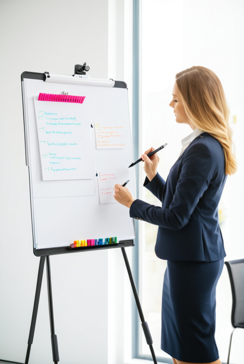 В динамичной бизнес-среде флипчарт становится центральным элементом коммуникации. Используемый как доска для совещаний, он позволяет оперативно фиксировать повестку, ключевые тезисы и принятые решения, делая их видимыми для всех участников. Это незаменимое оборудование для презентаций, особенно для сессий, где важна живая дискуссия.