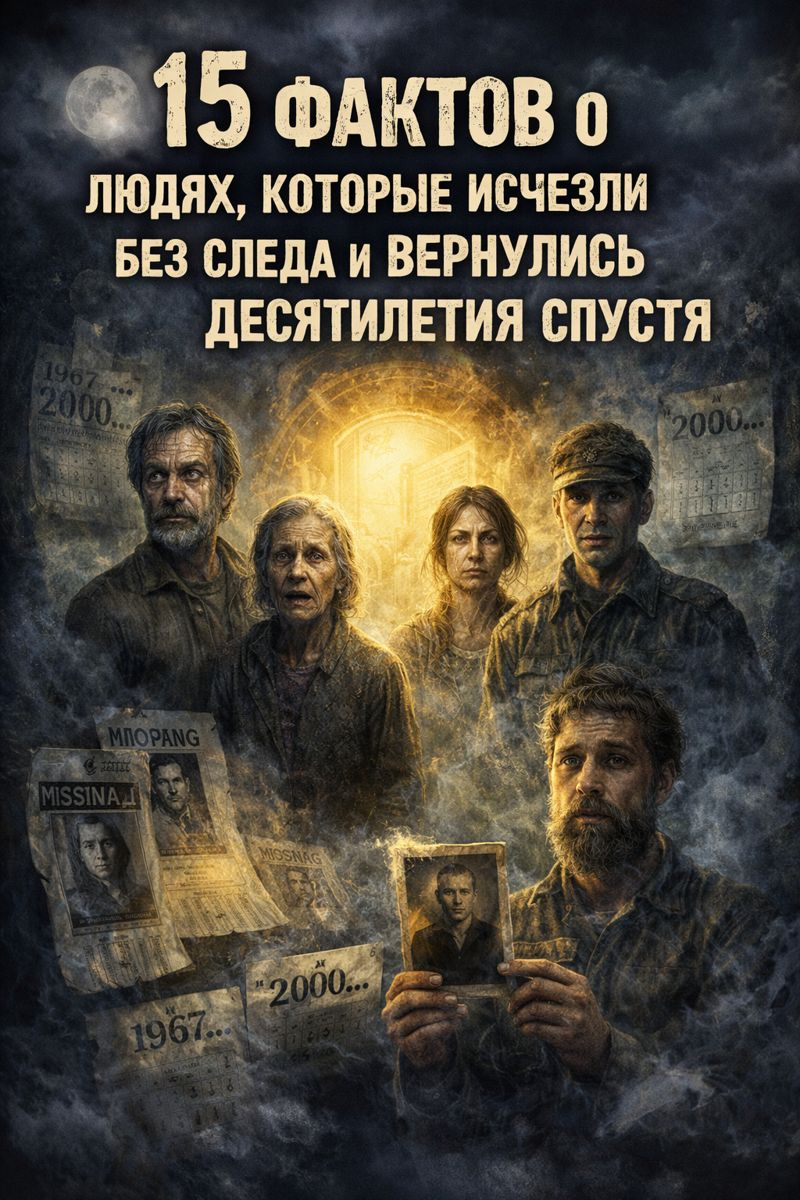 Когда человек исчезает, время для его близких замирает. Нет похорон, нет прощания, нет точки в истории — только бесконечное ожидание. Годы идут, дела закрываются, фотографии выцветают, а имя постепенно превращается в архивную строку. Но иногда происходит нечто, что ломает саму структуру реальности: человек возвращается. Спустя десятилетия. Без чёткого объяснения, без понятного маршрута, без следов жизни в мире, который продолжал существовать без него. Эти люди появляются так, словно выпали из времени и внезапно были возвращены обратно. Они не узнают города, не понимают технологий и часто искренне не верят, что отсутствовали так долго. В этой статье — 15 фактов о людях, исчезнувших без следа и вернувшихся десятилетия спустя. Каждая история — это не просто загадка, а удар по нашему представлению о памяти, личности и времени.