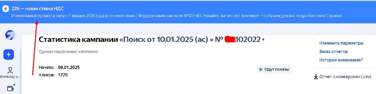 %... Вот такое предупреждение появилось в каждом кабинете Яндекс Директ...Что это значит? Что снова реклама дорожает (((...То налог на рекламу, то НДС выше...Эх....Пошла в Справку Яндекса и вот что там пишут: 🔸Как увеличение НДС повлияет на стоимость кликов? Стоимость кликов в Директе не фиксирована, а определяется в результате торгов между рекламодателями. Услуги Яндекс Директа облагаются НДС на общих условиях в соответствии с действующей ставкой налогового законодательства. С 1 января 2026 года она составит 22%. 🔸Что будет с остатком на моем счете? В интерфейсе сумма остатка на счете отображается как с НДС, так и без него. Сумма с НДС не изменится, а сумма без НДС пересчитается по текущей налоговой ставке. 🔸Что будет, если я оплачу предоплатный счет, выставленный в 2025 году? При оплате счетов в 2026 году будет применяться действующая налоговая ставка. Остаток средств в интерфейсе пересчитается с учетом 22%. 🔸Что будет с возвратом средств? Возвращается полная стоимость с уче