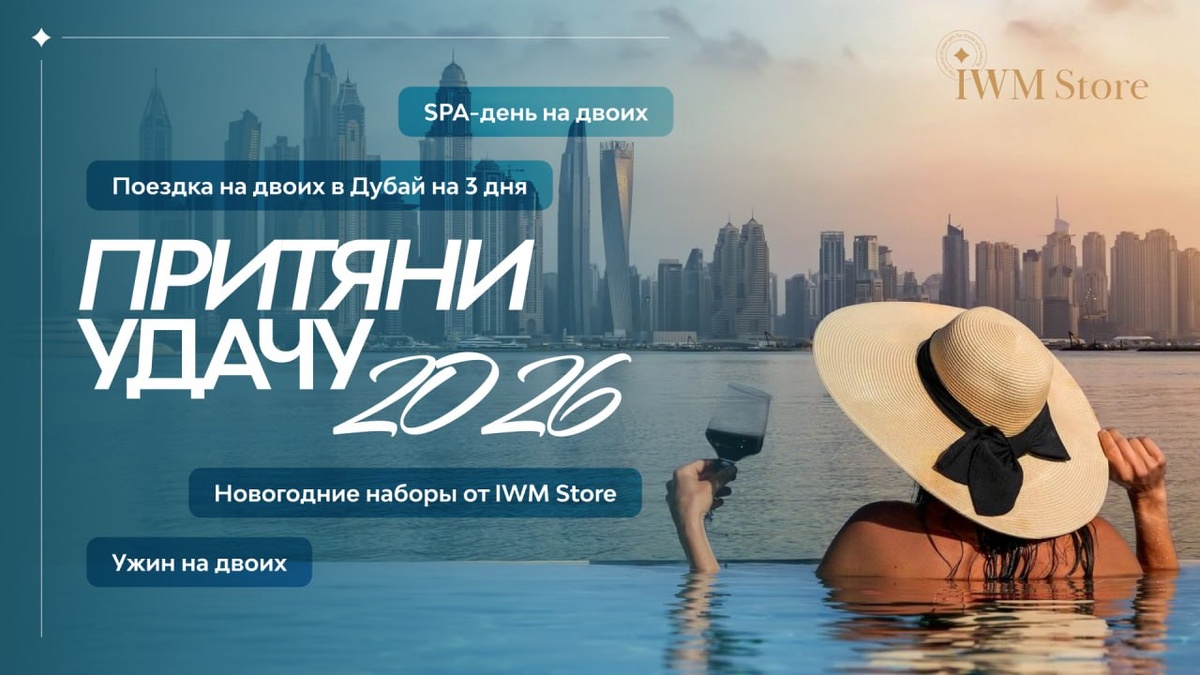 Успейте до 12:00 по МСК! Сегодня до 12:00 вы успеваете принять участие в новогоднем розыгрыше! Что дарит команда IWM Store? 🥇 Поездку на двоих в Дубай (3 дня). 🥈 SPA-день на двоих в вашем городе. 🥉 Ужин на двоих в лучшем ресторане вашего города. 🎁 Новогодние наборы от IWM Store. Условие простое: заказ от 2 026 рублей — и вы автоматически в игре. Розыгрыш пройдёт 27 декабря в 19:00 в прямом эфире. Ссылка: https://us06web.zoom.us/j/2116731674?pwd=xahqmhZLmGsNMAcfVYG8sNdiNWlLRY.1 А ещё — 27 декабря команда IWM Store подарит четыре роскошных подписки на товары бренда! Подписка подразумевает получение одного продукта каждый месяц в течение 25 ЛЕТ с момента проведения розыгрыша. Подробнее читать здесь. Хотите знать каждую деталь розыгрыша? Вам сюда! С Наступающим! 🎄