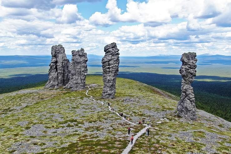 ? Плато Маньпупунёр на Северном Урале - место, официально признанное одним из семи чудес России. Среди бескрайней тундры возвышаются семь гигантских каменных столбов высотой до 42 метров. Они появились более 200 миллионов лет назад, когда здесь находились горы. Ветер, морозы, дождь и время уничтожили всё лишнее, оставив только эти причудливые формы — словно застывших великанов, охраняющих покой Севера. Для коренного народа манси Маньпупунёр — священное место силы, окутанное легендами и тайнами, где каждый камень хранит свою силу. Путь сюда — это настоящий вызов: либо многодневный поход через тайгу и горы, либо захватывающая вертолётная экспедиция. Но именно эта труднодоступность делает встречу с Маньпупунёром по-настоящему незабываемой.