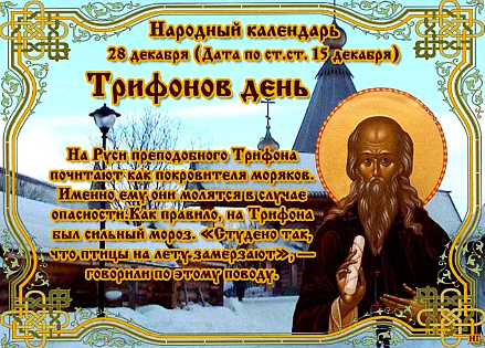 Православная церковь 28 декабря чтит память Трифона Печенгского – русского православного монаха, проживавшего в XVI веке на Кольском полуострове. Он вёл аскетический образ жизни, основал Печенгский монастырь. Церковь почитает его в лике преподобных.