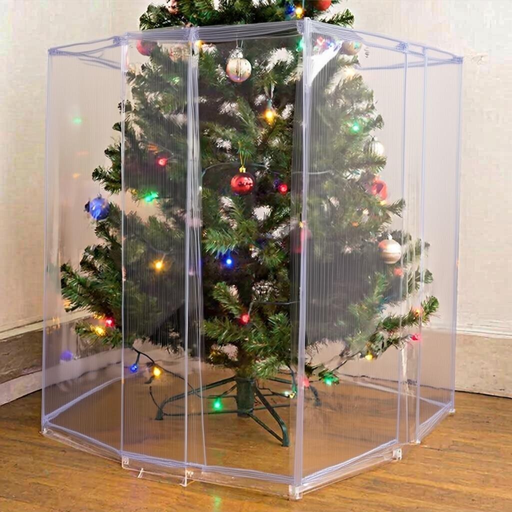 Как защитить новогоднюю ёлку от кота: прозрачная пластиковая перегородка своими руками