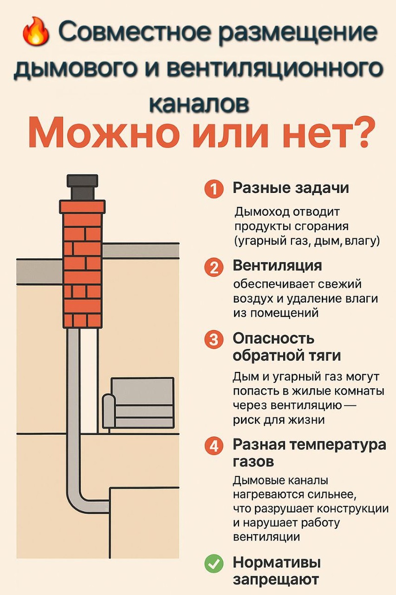 🔥💨 Совместное размещение дымового и вентиляционного каналов — можно или нет?