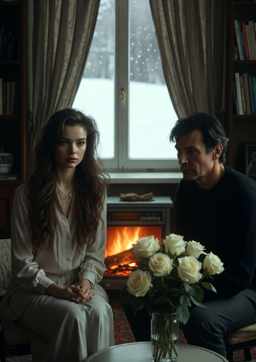 Прошла неделя. Однажды вечером, когда снег за окном валил хлопьями, они сидели у камина — старого, электрического, но уютного. Паша взял ее руку: "Аня, прости меня." Она не спросила "за что" — просто посмотрела в глаза. Он продолжил: "Пока тебя не было... я встретил одну. Она... оживила меня. Я думал, что наша жизнь — это все, что есть. А оказалось, есть еще чувства, которые я забыл." Слова его были тихими, но тяжелыми, как приговор.