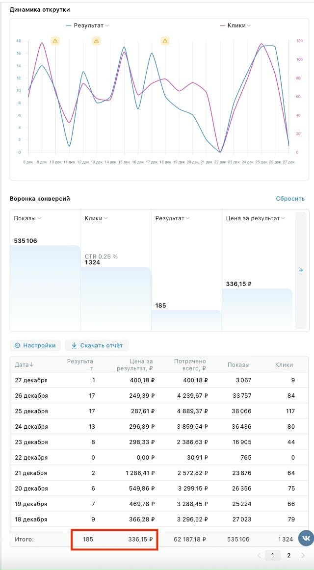 ? Тут статистика с 8 по 26 декабря. Это цель личные сообщения. Не подписка, не реакции, не сенлер и не лид формы. Тупо на лс паблика веду Подробности показываю в кухне лидов. Хочешь к нам? Подробнее про кухню тут https://t.me/ttusovka_news/724 расскажу как заглянуть за кулисы лидгена:) Ну а те кто уже с нами, видят, что я делаю и повторяет 1в1 получая результаты))) С наступающим)