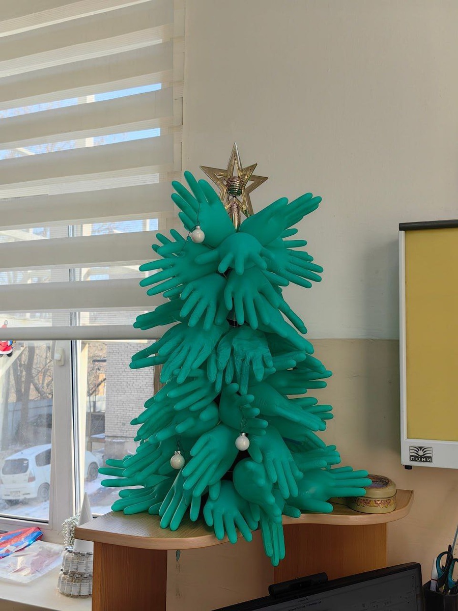 Елку из медицинских перчаток и гирлянду из пробирок сделали в своих кабинетах врачи из краевого туберкулезного диспансера к Новому году