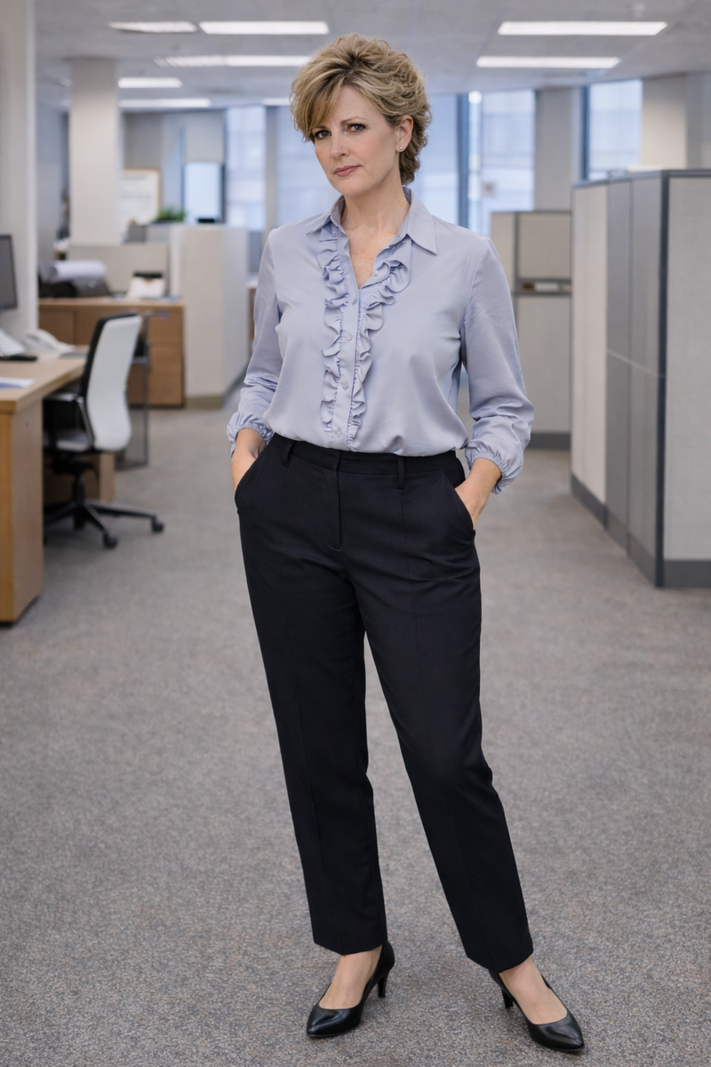 Зауженные брюки со стрелками — это форма бухгалтера из 2008 года. Они делают силуэт устаревшим, подчёркивают полные бёдра, укорачивают ноги и добавляют 10 лет минимум. Особенно если они чёрные, с завышенной талией и вы носите их с заправленной блузкой.