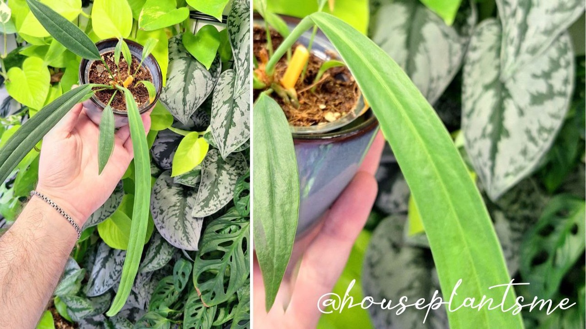 🤩 Ведь в нем все идеально: форма листа, его неприхотливость к условиям выращивания и лаконичность в расцветке. 🤩 Прошу любить и жаловать Anthurium bakeri. Это единственный Антуриум, который живет в моей коллекции. Я бы вообще не знал о таком сорте, так как я к ним отношусь ровно и не интересуюсь ими от слова совсем, но в августе Мила отправила мне посылку и положила этот сорт в дар. 🤩 Когда я распаковывал посылку и, увидев его, у меня возникло двоякое чувство – восторг и некое отрицание, потому что у меня никогда с ними не было взаимодействия. При этом уже прошло почти полгода, и только сейчас пришло осознание того, что он мне очень нравится 🤩 🤩 И мне недавно пришла идея посадить его в кокедаму, ведь для этого все есть: грунт, мох, леска и кокосовые волокна. Как думаете, стоит это сделать? #антуриум_бейкера@houseplantsme ⚫️⚪️🟤 Делитесь, у кого есть в коллекции Антуриумы — как у вас обстоят с ними дела? А также отправляйте фотографии своих красавцев 🤩