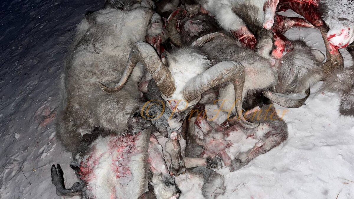 После отстрела на месте баранов не разделывают, только зарезают голяшки и целиком везут на базу. Там, уже в темноте обычно, снимают шкуру, извлекают «шмурдяк» и оставляют на улице, где они быстро промерзают. На фото как раз туши, сложенные под шкурами. Домой везут в виде туш, а уже в поселке ленточной пилой разбирают на порции для тех, кто увозит с собой (я умудрился до Москвы довезти и ничего не разморозил). Местные парни хранят в виде туш или полутуш. #путешествие #охотничьизнания #баран #горы