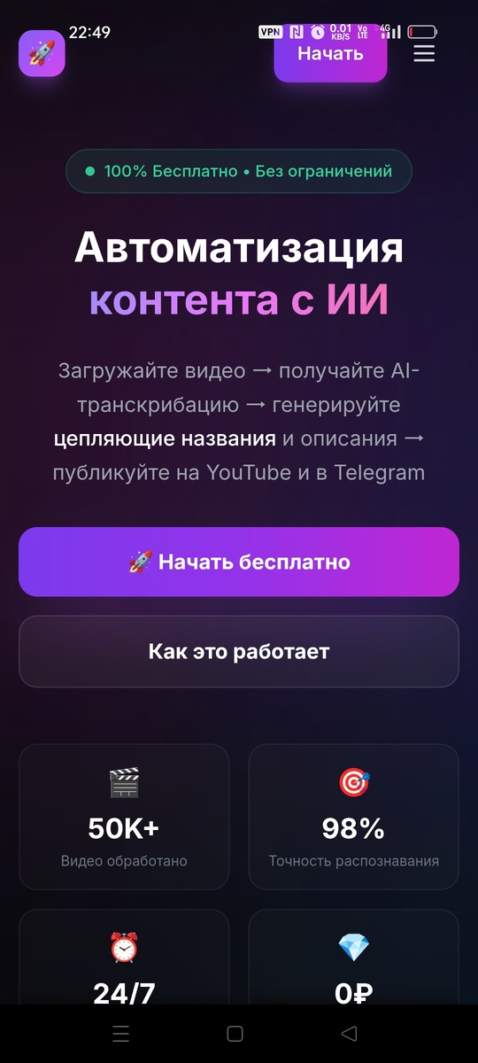 🔥 Бесплатная транскрибация видео и генерация контента: