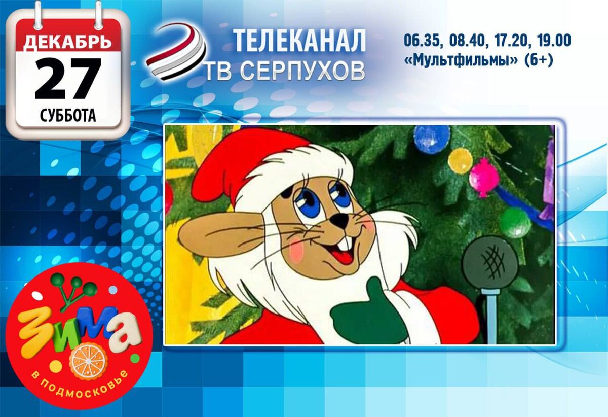 Что смотреть в субботу на нашем телеканале? 07.00, 10.00, 13.00, 16.00, 18.00, 20.00, 22.00, 00.00, 04.00, 06.00 «Итоги» (16+) 06.35, 08.40, 17.20, 19.00 м/ф «Мультфильмы» (6+) 07.30, 17.30, 05.30 д/ф «Редкие профессии» (12+) 07.55, 21.20, 22.30 д/ф «Экспедиция в прошлое» (12+) 09.10, 10.30, 19.10 т/с «Призрак уездного театра» (12+) 11.15, 13.30, 23.40, 00.25 т/с «Черная метка» (16+) 14.55, 16.30, 03.15, 04.30 х/ф «Агата и сыск. Выгодный риск»(12+) 18.30 д/ф «Тайны анатомии» (12+) 20.30 программа «Сделай громче» (16+) 22.40 д/ф «Наука есть» (12+) 23.10 д/ф «Добавки» (12+)