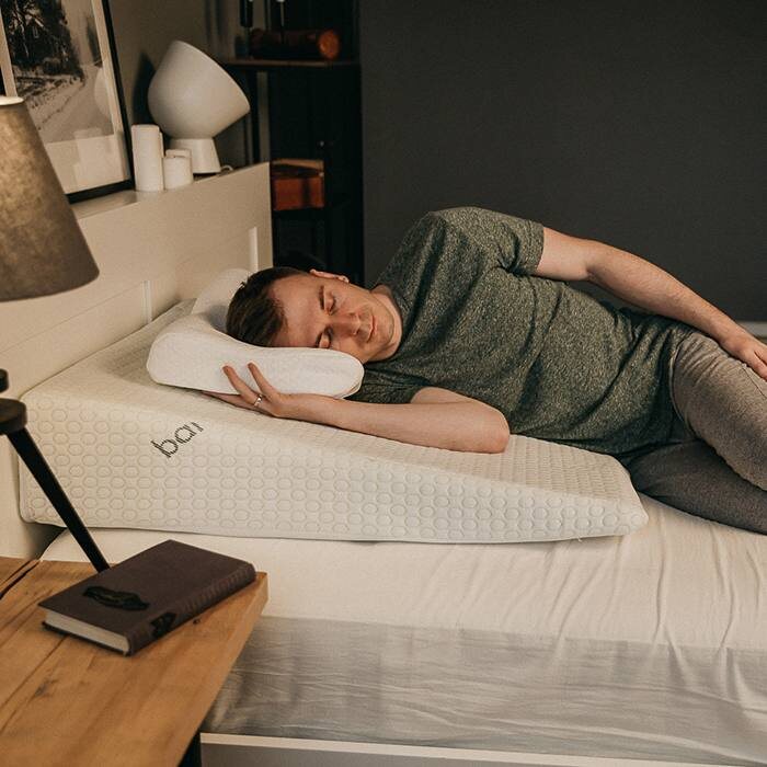 🛏 Чего только не изобретут 😁 Но замечу, что такая мера может значительно улучшить качество сна и помочь при ряде проблем со здоровьем👇🏻 • Гастроэзофагеальная рефлюксная болезнь (ГЭРБ): подушка снижает вероятность заброса желудочного сока в пищевод, уменьшая дискомфорт. • Апноэ сна: приподнимает верхнюю часть тела, облегчая дыхание и снижая риск остановок дыхания во сне. • Храп: уменьшает вибрацию мягких тканей, тем самым снижая интенсивность храпа. • Боли в пояснице: обеспечивает правильную поддержку позвоночника и помогает расслабить мышцы. • Отёки ног и варикоз: использование подушки под ногами способствует улучшению циркуляции крови и уменьшает отёчность. • Заложенность носа при простуде: наклонное положение способствует снижению отёков и облегчению дыхания. Возможно и вы теперь захотите приобрести себе такую 😌 #здоровый_сон © Основы жизни Наш канал теперь и в - MAX!
