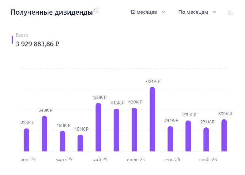 🪙 Остаются считанные дни до конца 2025 года, а значить пришла пора подводить итоги. В этой серии постов я напишу краткие выводы по разным аспектам проекта "Работящие деньги 💵" Начать я хочу с самого приятного аспекта - Дивидендов, тут мы детально рассмотрим сколько выплат я получил со всех активов за 2025 год. За 12 месяцев я получил 3 929 883 ₽ - ЧИСТЫМИ (еще должны прийти выплаты около 6к) По сути 4 млн руб (лукоил чуть задержал до января, так бы было 4,1 млн. За 2024 год сумма была 2 480 000 руб (+1,5 млн г/г) С одной стороны цифра приятная 327 000 руб в месяц, с другой четкое осознание, что впереди предстоит еще много работы👨🏻🔧 Доли полученных выплат: 1️⃣Облигации 1 839 000 руб 2️⃣Дивы с акций 859 000 руб 3️⃣Вклады 650 000 руб 4️⃣ЗПИФ-ы 280 000 руб Теперь про негативные факторы: 🔸Как видно, мои выплаты очень шаткие в условиях, что большинство приходится на облигации, а ставки по ним регулярно снижают, соответственно ручеек денежного потока по ним регулярно снижается. На