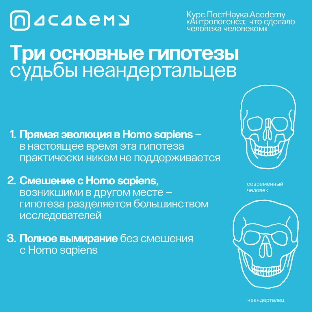 Что поучительного в судьбе неандертальцев? Разбираем в одном из уроков курса Академии ПостНауки «Антропогенез». Посмотреть содержание и купить курс можно по ссылке: https://postnauka.org/link/evolution_tg