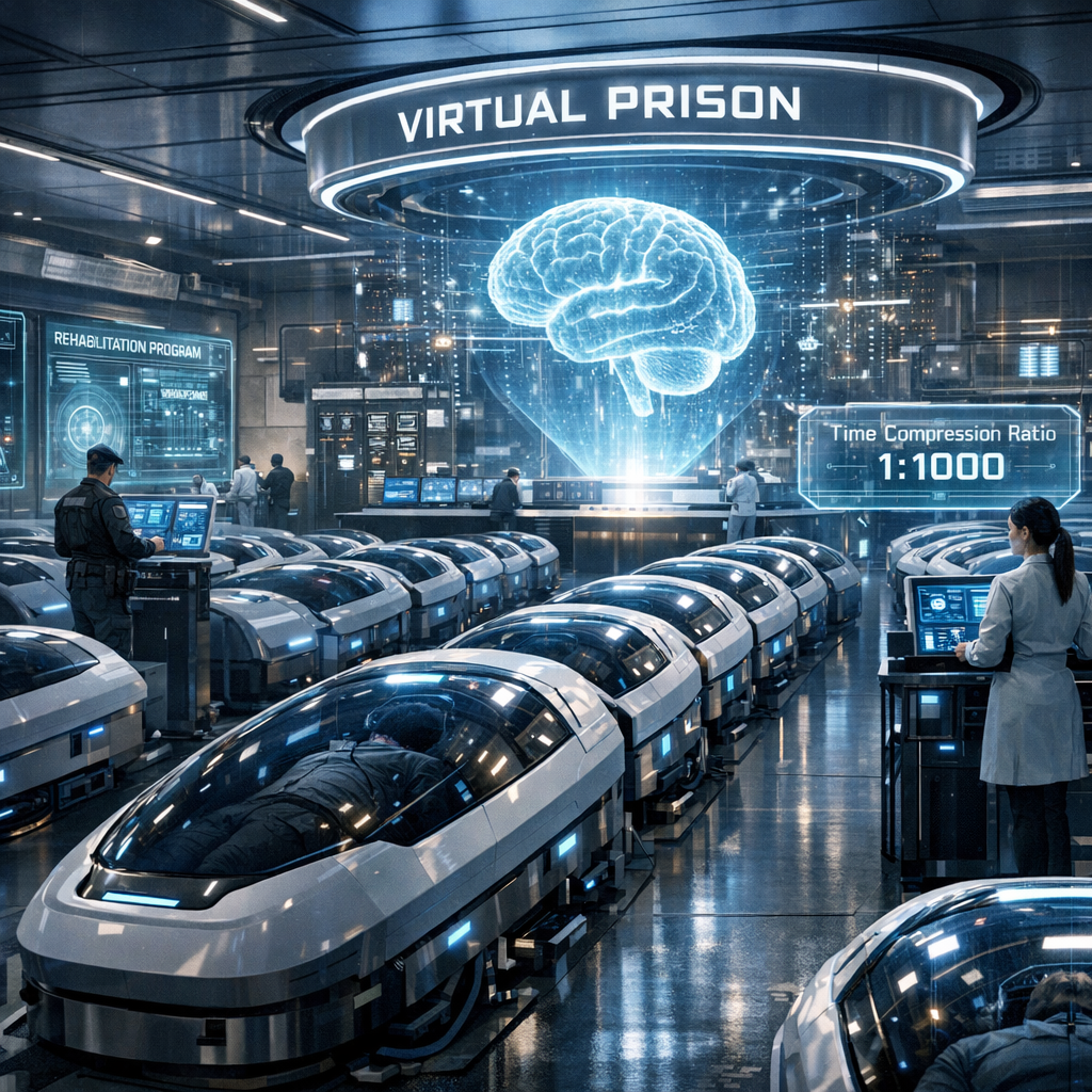 Середина XXI века. Бетонные коробки с колючей проволокой окончательно ушли в прошлое, уступив место бесшумным залам с рядами капсул, похожих на саркофаги. «Виртуальная тюрьма» — революционный проект, объединивший нейротехнологии, квантовые вычисления и искусственный интеллект. Зачем содержать преступников годами, тратя ресурсы и рискуя безопасностью граждан, если можно «перевоспитать» их за несколько реальных месяцев? Один день снаружи равнялся почти трем годам внутри. Гуманно, экономично, эффективно.