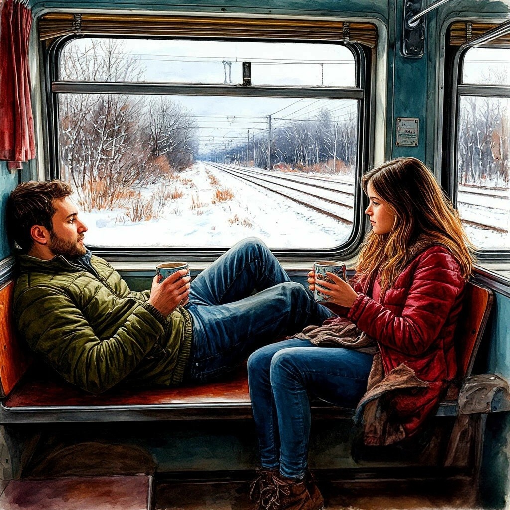ГЛАВА 2. ЧАЙ С НОТКАМИ ТАЙНЫ. Чашка в руках Леры медленно остывала, но она почти не замечала этого. Взгляд то и дело скользил по лицу Макса — спокойному, сосредоточенному, с лёгкой тенью усталости в уголках глаз. За окном мелькали смутные очертания деревьев, укутанных в снежные шали, а в купе царил уютный полумрак, разбавленный тёплым светом потолочного светильника. — Вы говорили, что работаете в издательстве, — напомнил Макс, осторожно ставя кружку на столик. — Что именно вы делаете? — Я редактор, — Лера слегка улыбнулась. — Правда, пока скорее «младший». Читаю тексты, помогаю авторам дорабатывать рукописи, иногда пишу аннотации. Мечтаю когда‑нибудь выпустить собственную книгу, но пока… пока только мечты. — Почему «пока»? — он слегка наклонил голову. — Если мечта есть, значит, всё возможно. Она пожала плечами, глядя в окно: — Иногда кажется, что это просто фантазия. Как будто я представляю себя кем‑то другим — более смелым, более талантливым. Макс помолчал, потом ти