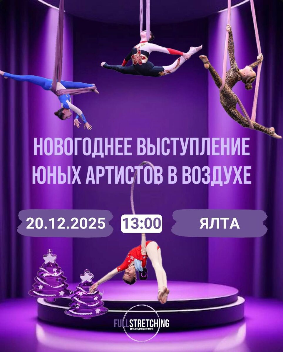 Совсем скоро студии «Fullstretching» г. Ялты и Севастополя представят свой отчётный концерт👯♀️ Яркое шоу-сказка, где каждый номер - это результат таланта, труда и любви к полёту🪽 Наши ученики готовят невероятные выступления на воздушных снарядах🥰 Мы обещаем: будет атмосферно, красиво и по-настоящему захватывающе!🤩 Дата: 20 декабря Место: Ул.Загородная 4(студия Растяжки) Время: 13:00 Приходите поддержать наших юных артистов и зарядиться вдохновением!❤️