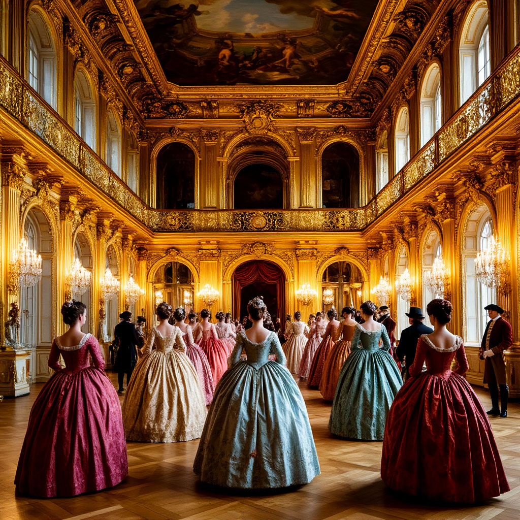 Если казалось, что поместье роскошное, то бальный зал был изготовлен из чистого золота – все в нем блестело и отражало свет так, что пришлось немного прищурить глаза, как только мы переступили порог. Десятки дам в пышных, нарядных платьях стояли под стенами и перешептывались между собой, мужчины сгрудились вокруг стола с напитками и лениво говорили – и все это стихло, стоило нам зайти внутрь.