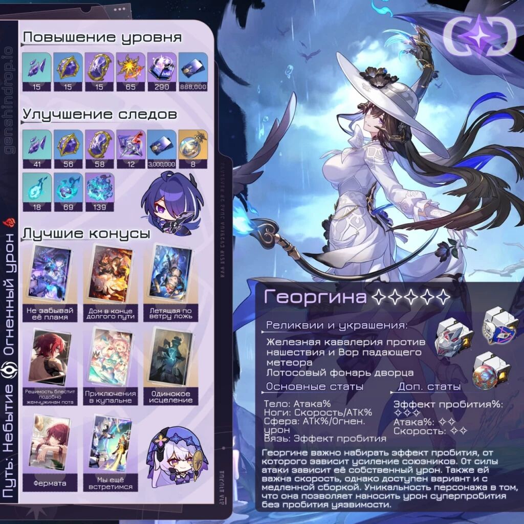 ㅤОсновная саппортская функция заложена в таланте и следах Георгины, однако и сама она может наносить неплохой урон, что потребует от вас прокачки и других приёмов.