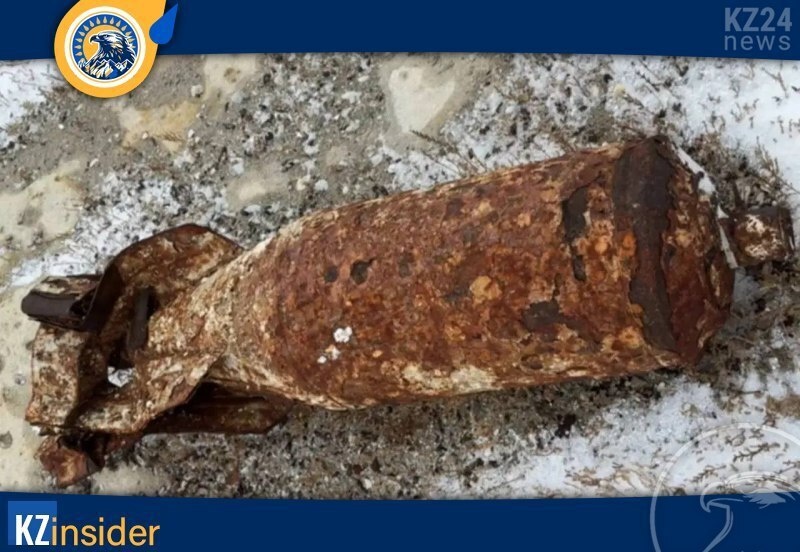 ❗️ Под Актау нашли учебную авиабомбу В 39 км от Актау охотник обнаружил предмет, похожий на авиабомбу. На место прибыли полиция и сапёры. По предварительным данным, находкой оказался учебный авиационный снаряд П-50-75. Опасности он не представлял, полиция зарегистрировала факт и проводит проверку.