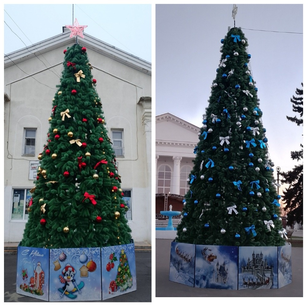 Администрацией Цимлянского городского поселения закуплены и уже установлены две искусственные новогодние ели высотой семь и восемь метров.