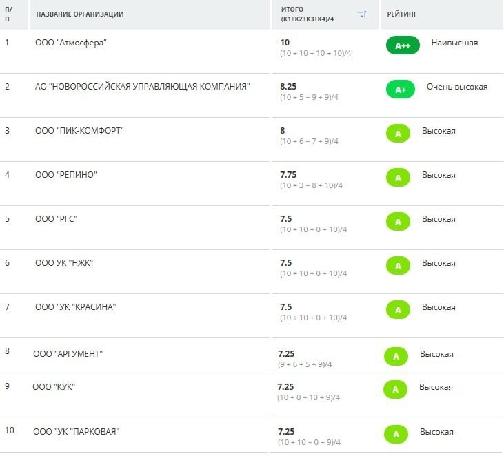 На платформе «Мой-Новороссийск рф» составлен ежемесячный рейтинг управляющих компаний города за ноябрь 2025 года