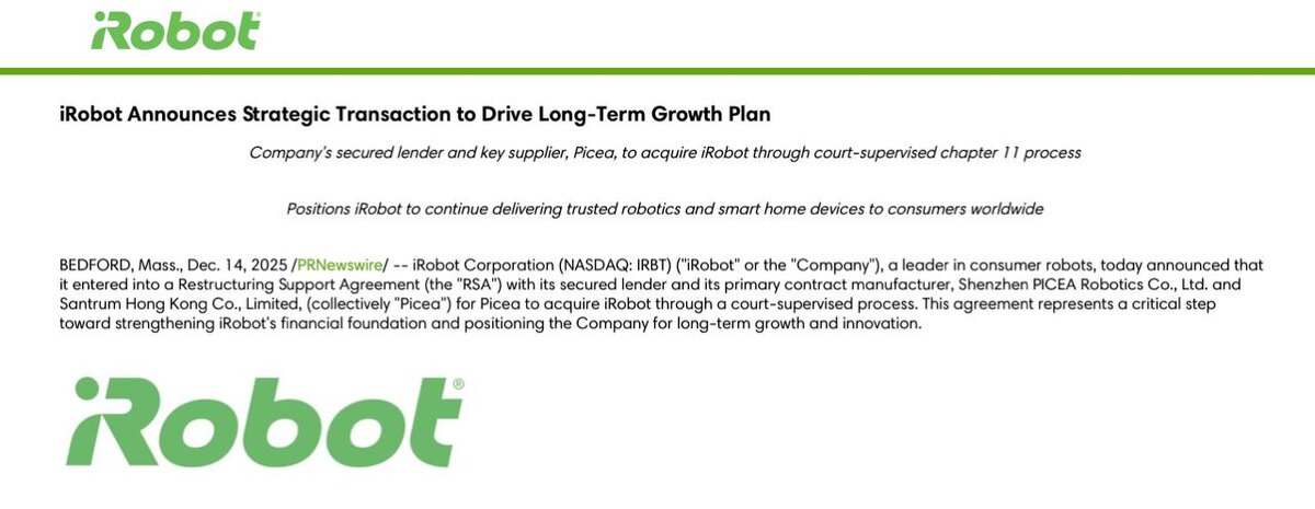Спустя месяц после объявления о возможном банкротстве компания прекратила существование в прежнем формате и перешла под контроль китайской компании Shenzhen PICEA Robotics Co. Поглощение позволит сохранить текущие операции и выполнить все обязательства. Новый владелец выкупил долги компании и привлек дополнительное финансирование, а роботы-пылесосы будут продолжать продаваться и обслуживаться. 📱 Новости рынка БТиЭ | Забустить