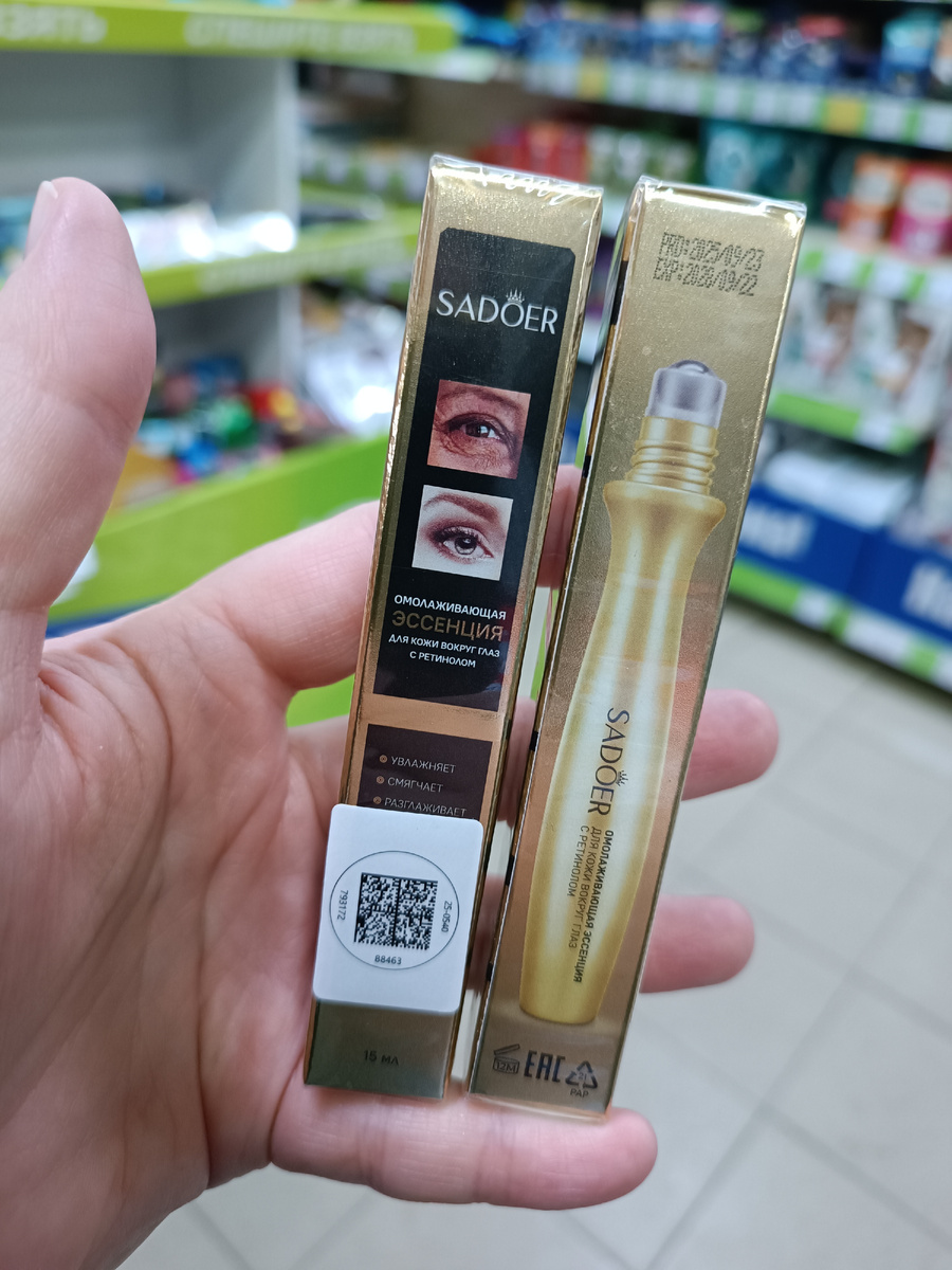 Начну с кассы, сразу обратила внимание на эссенции в коробках, которые напоминают коробочки от туши для ресниц. Рассматривали и обсуждали там покупательницы, поэтому тоже решила снять. Вроде такие или похожее что-то ранее бывало. Но точно не помню. Бренд знакомый - Садоер китайский.