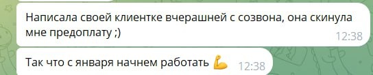 А вот и прекрасная новость от нашей героини ❤️ Лена получила предоплату за 2х-месячное наставничество. По взаимной договорённости с клиентом, работу они начнут в январе, оплата будет разбита на 2 платежа. Лично я очень рада за Лену! Пока многие чего-то ждут, она берёт и делает🔥 #реалити Кто я? |Реалити | Кейсы и отзывы | Навигация