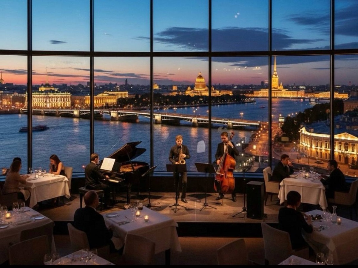 Новогодняя мечта пойти в ресторан La Vue✨ ~ роскошный видовой ресторан с красивым видом на доминанты Петербурга❤️💛 Единственный минус - цены на все блюда от 1000р💸