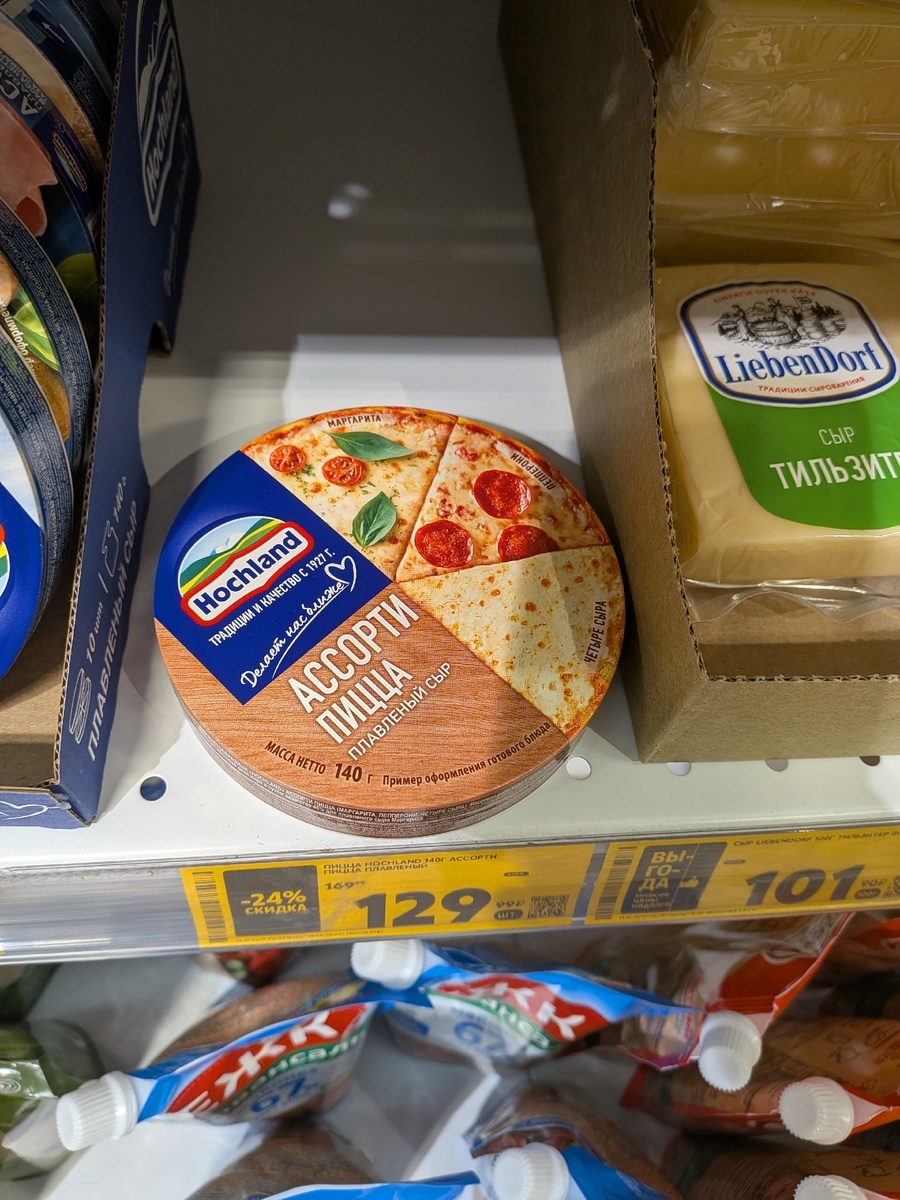 Думаю, не только я уже потихоньку готовлюсь к праздникам, покупая некоторые продукты - сейчас ни очередей, ни завышенных цен (хотя, признаться, не замечала особо, чтобы они менялись как-то резко), ни пустых полок. Мне больше нравится последний пункт, поскольку те же овощные консервы я хочу приобрести от популярных брендов, а их зачастую и раскупают в первую очередь, тем более если есть скидка. Но речь сегодня пойдет не об этом! Я побывала в "Пятерочке" и нашла много интересных новинок, среди которых попадались продукты, которые лично для меня стали чем-то неожиданным. В последнее время бренды в принципе стараются удивлять по-настоящему новыми идеями, правда тут еще важно, чтобы реализация этой идеи не подвела. Давайте покажу какие продукты уже ждут нас на полочках магазина, а заодно расскажу о том, что сама сразу захотела приобрести: Все, что связано с сырами, это точно ко мне. У "Hochland" есть весьма интересная новинка в виде плавленого сыра, где представлено ассорти из трех вкусов
