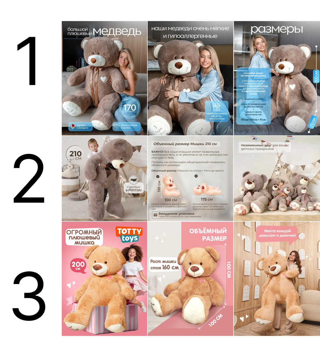 Что меня удивило в карточках этих медведей - очень много рациональности, измерение этих медведей - как правильно, а как нет. Казалось бы - эмоциональный подарок, надо эмоцию продавать, а тут куча характеристик и инфографики.