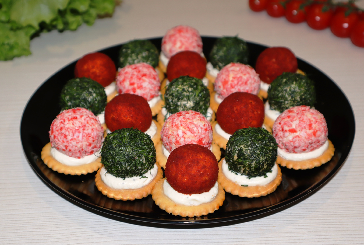 Крабовые шарики на крекере: яркая закуска, которая улетит со стола мгновенно!