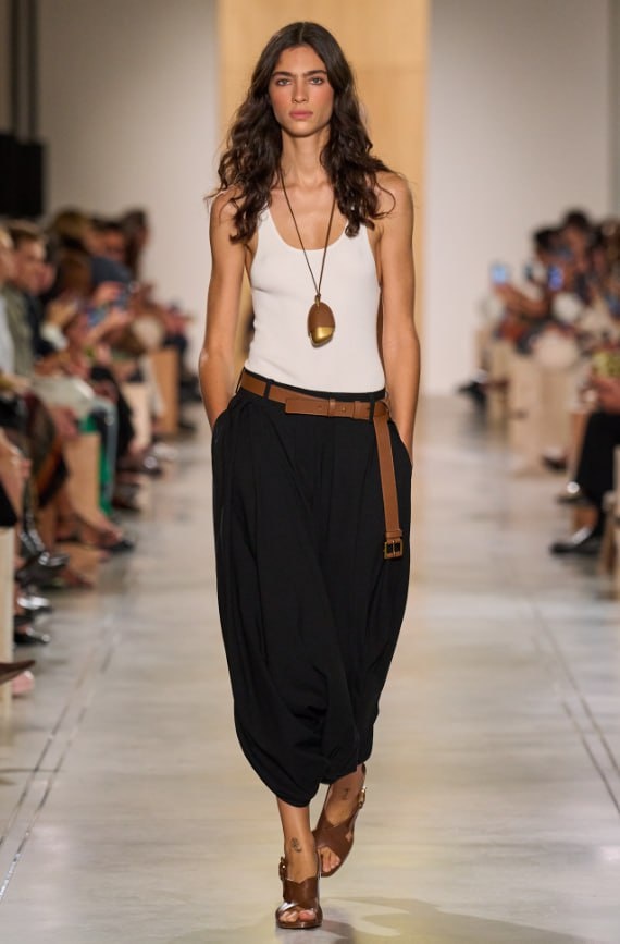 Майкл Корс показал, как выглядит шик сезона весна-лето 2026! ✨ Этот образ с подиума доказывает: гениальность в простоте. В основе — вечная классика: белый топ + свободные черные брюки. Но весь сок в деталях, которые делают этот лук от Michael Kors особенным! Что добавляем, чтобы получить тот самый «вау»-эффект: • Широкий коричневый ремень, который создает акцент на талии. 🤎 • Элегантные босоножки в тон ремню — идеальный мэтч. • Длинный кулон, чтобы визуально вытянуть силуэт и добавить изюминку. ⛓️ Получаем расслабленный, но невероятно элегантный вайб. Идеально для теплых дней, когда хочется выглядеть на все сто без лишних усилий! ☀️ Как вам такой лук от маэстро? Сохраняйте в закладки, чтобы не потерять! 👇 #весналето2026 #модныетренды #стильныйобраз #минимализм #показмод
